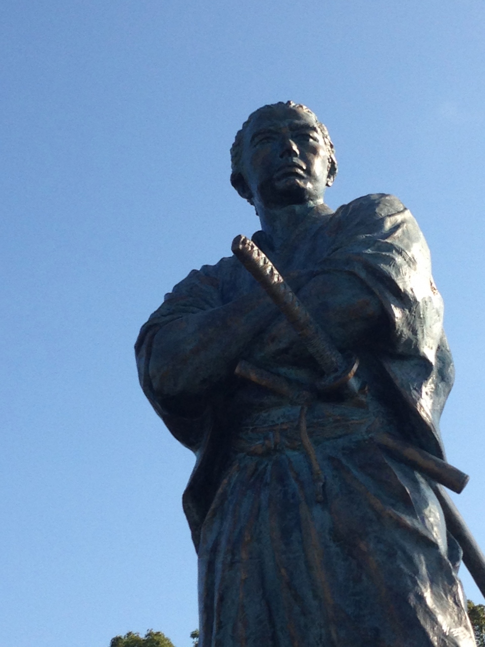 長崎港を望む風頭公園に、堂々と建っているこちらの龍馬像。
