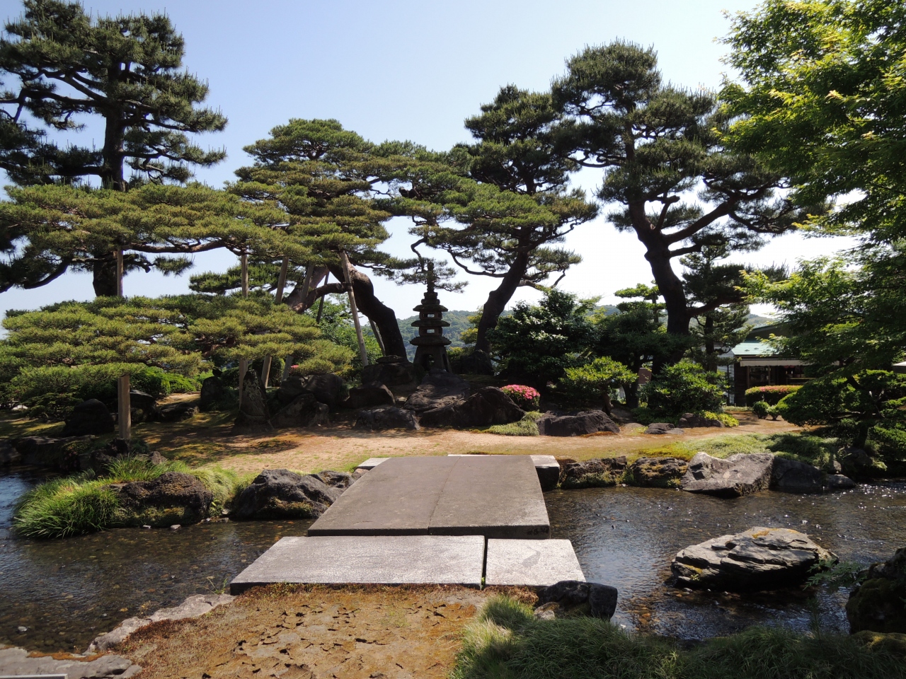 手前に水が流れ風流なところです。