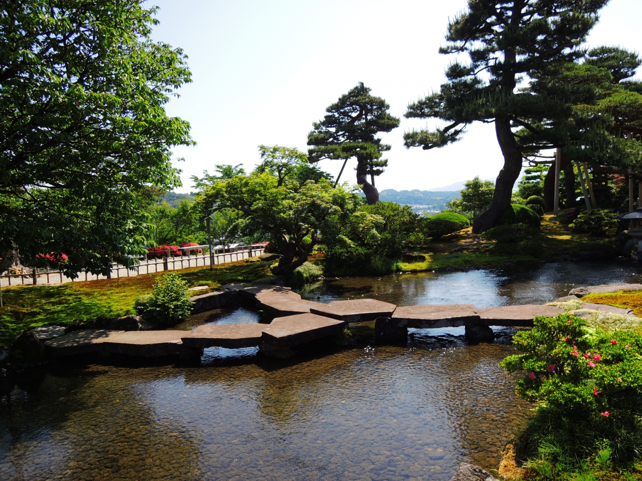 石の素材も赤い赤戸室石を採用され、橋も平らでなく凹凸をつけているのにも感動しました。
