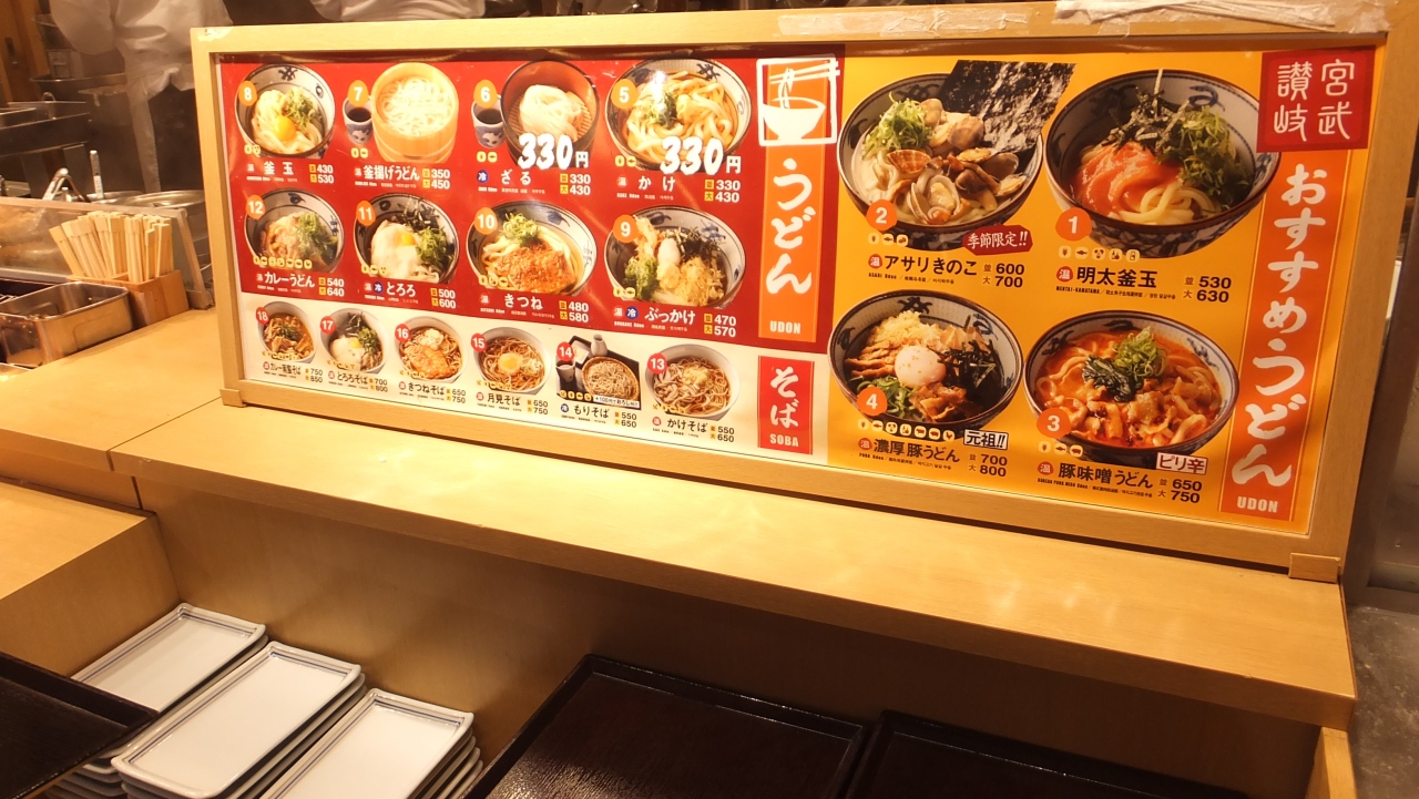 フードコートには、「本場香川 宮武讃岐うどん」「リンガーハット」「フレッシュネスバーガー」「洋丼屋ONE BOWL」「ぼてぢゅう屋台」「寿司 TATSU SUSHI」「カフェベネ」などがあります。他のターミナルのレストランよりは、全体的には価格も安めです。