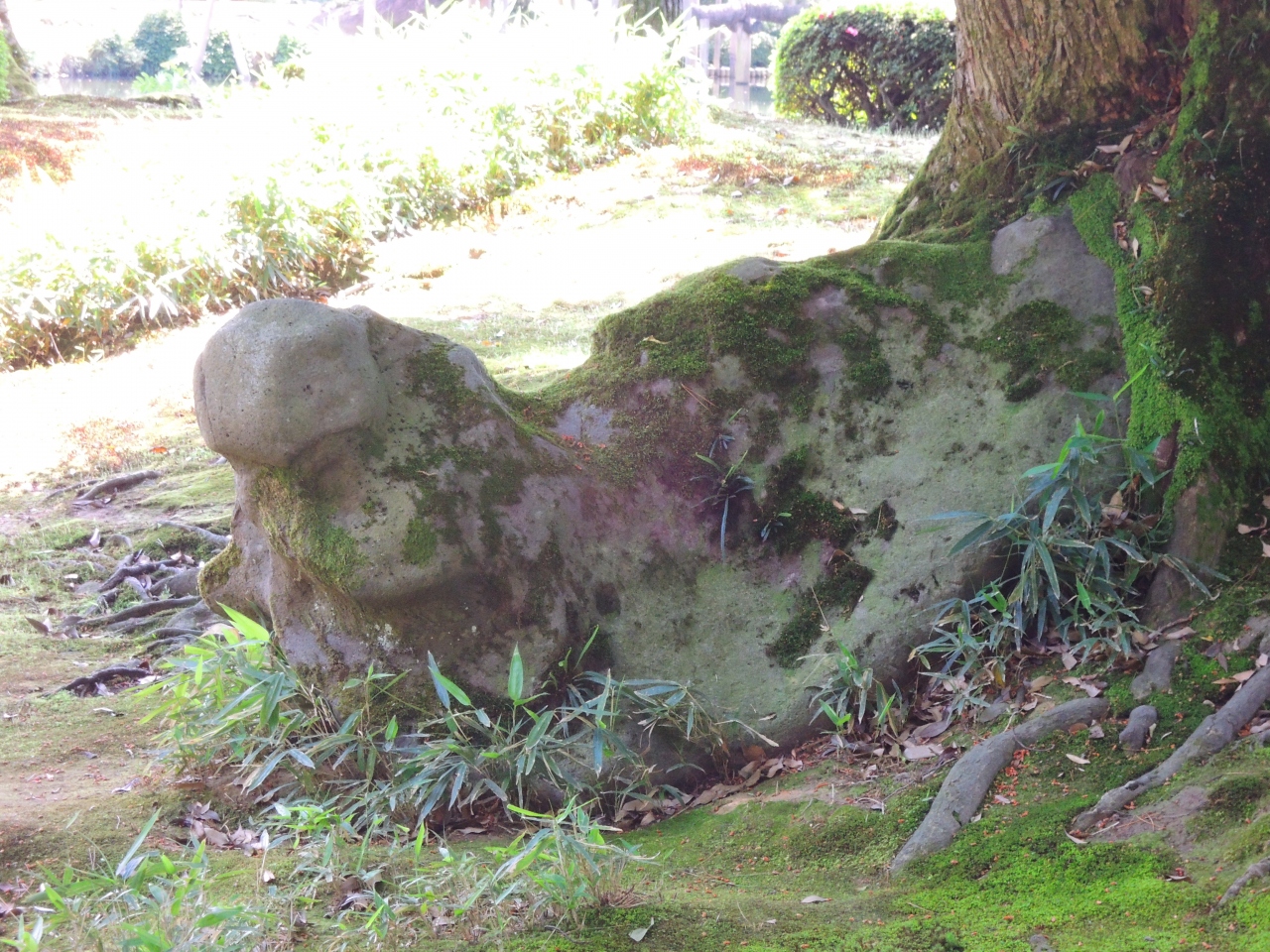 徽軫灯籠のすぐそばにある虎石ですが、自分にはどう見ても虎にみえないのが情けなくて・・・。虎が前足を低くして吼えている姿だそうですがそういわれてもわからないのが・・・。