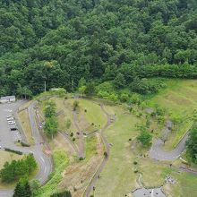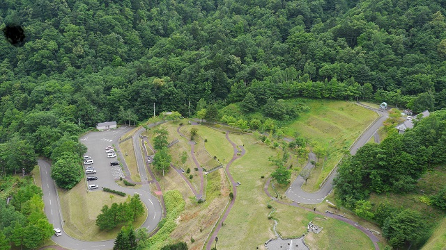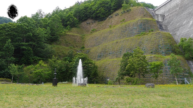 定山渓温泉街から歩くこと30分。定山渓ダム下流園地には広場が整備されている。ダム堤内部の見学が一部できるようになっていて、ここは夏なのに内部はひんやり。ちょうど関東が梅雨明けした時期、北海道では梅雨もどきの高温多湿多雨気候に入っていて、少し動くだけで汗が噴き出る折、束の間の涼を感じることができた。