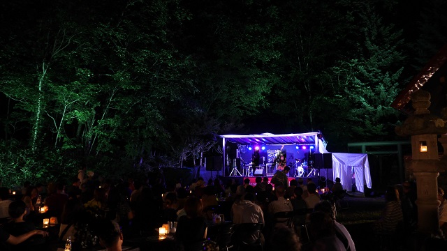 定山渓温泉の国道沿いにある神社。日中訪れた時は静かな環境で夕日岳の登山口もあるがいずれにしても静寂な雰囲気。7月の3連休時の訪問では夜間にジャズイベントが開催されていて、生の迫力ある演奏を聴くことができた。普段あまり聞かないジャンルではあるが、旅先などでなんとなく触れているとその良さを感じられるような気がしてとても良い。