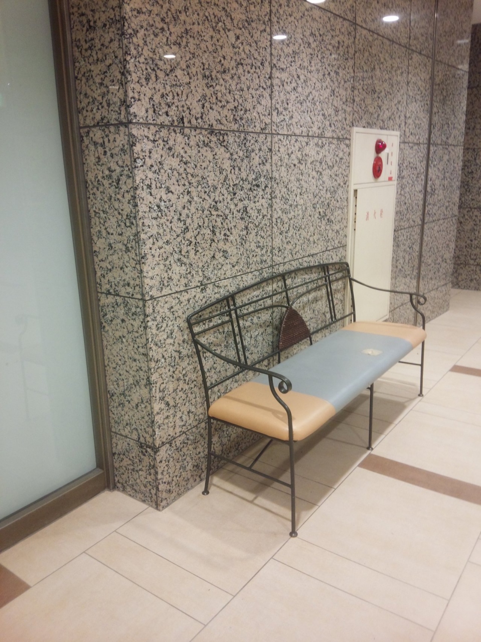客層はシニア層が中心なのでエレベーター待機時に座れるベンチも用意されました
