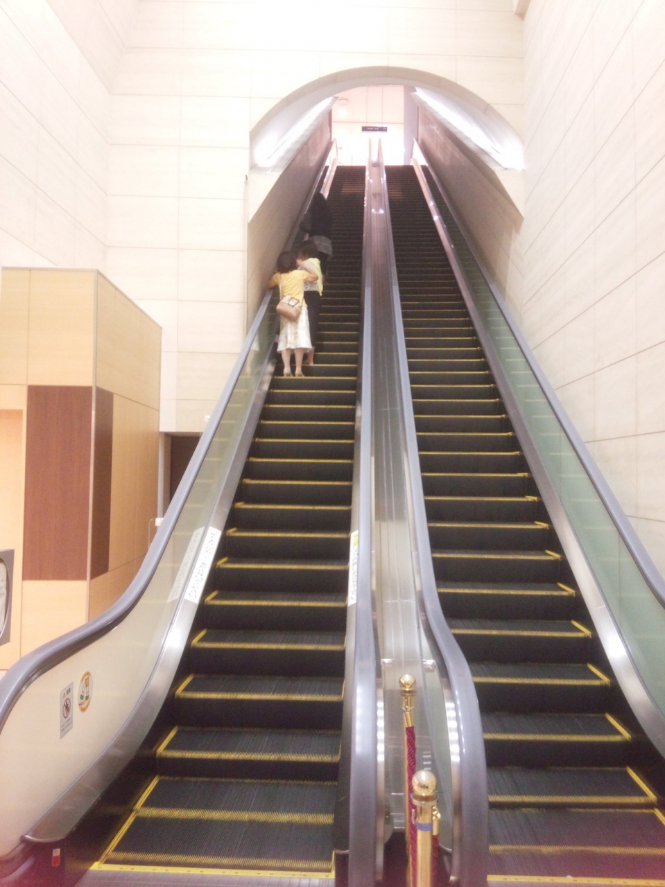 エスカレーターは3階迄直通のがこの3台のエレベーターの直ぐ先に有りますが大変急勾配ですのでお子様連れや高齢の方はエレベーター利用をお勧めします