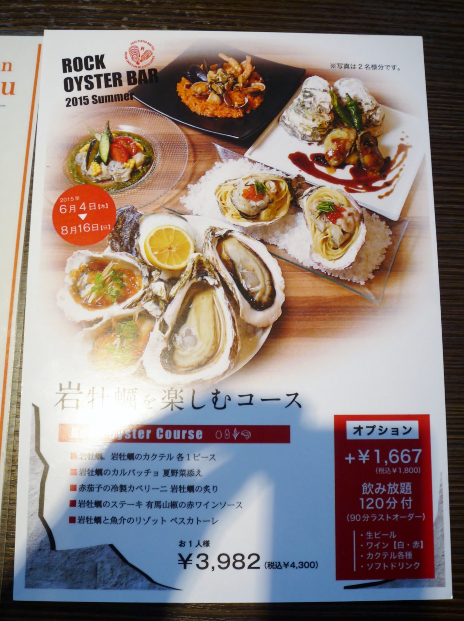 岩牡蠣を楽しむコース(税込4300円)に、