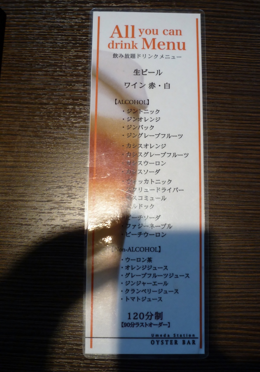 2時間飲み放題1800円をプラスして予約しました。