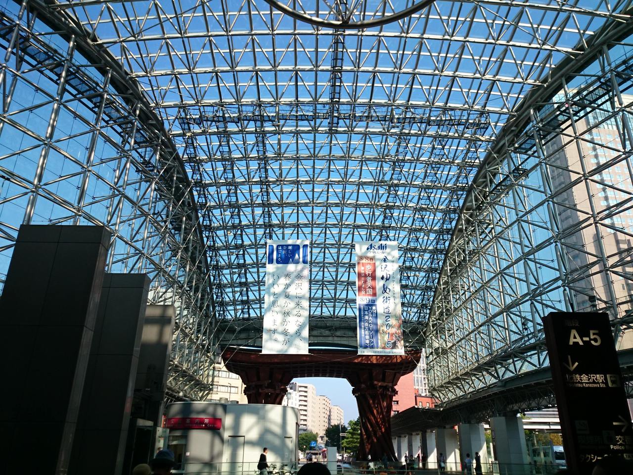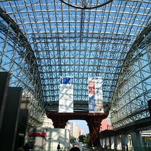 金沢駅の東口をでるとガラス張りの巨大なドームが現れます。