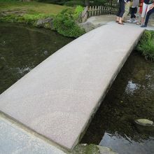 金沢 兼六園 霞ヶ池の北岸、徽軫灯籠の手前に架かる一枚岩の石橋です。