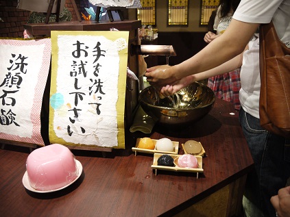 丸いプヨプヨの石鹸で有名な鎌倉蒟蒻しゃぼんが横浜赤レンガ倉庫内にも「横浜蒟蒻しゃぼん」がオープン。「蒟蒻しゃぼん」て天然の蒟蒻芋から出来た石鹸なんです。店内では試しに洗う事が出来ますが、何か妙な手触りですが泡が細かくて高級感たっぷりです。