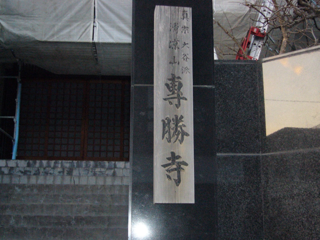 浅草国際通り沿いの雷門1丁目交差点を本山東本願寺方面に向かう途中の閑静な住宅街に密集するように寺院がたくさんある中に専勝寺があります。こじんまりとした寺院の中でも比較的大きな本堂でコンクリート建ての銅板で本瓦葺き入母屋造り屋根、本堂入口は閉まっていましたが桝格子のガラス障子が綺麗でした。