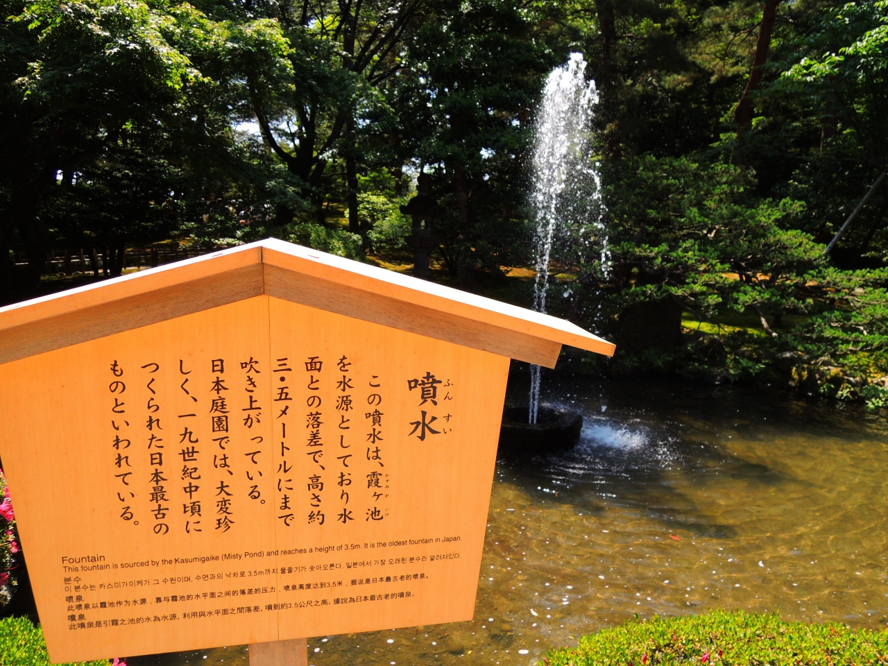 知らなければ素通りしてしまうただの噴水ですが、なんとこの噴水はポンプで吹き上げているのではなく兼六園の池との水圧を利用した日本庭園最古の噴水なのです。