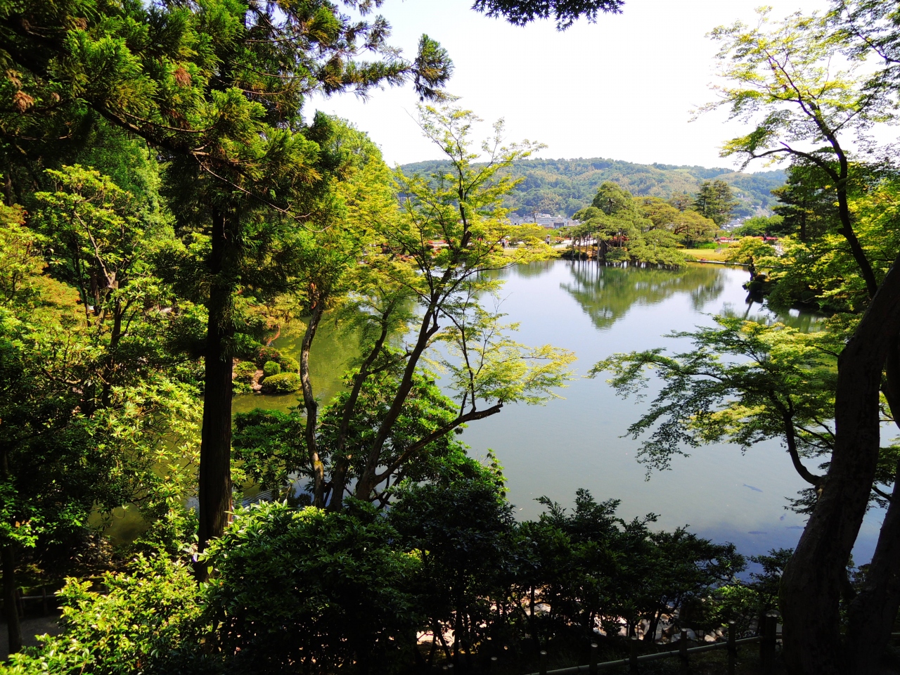 栄螺山は小高い山になっていて螺旋状の道を上って行くと池全体が見渡せる違った兼六園をみることができてお勧めです。この栄螺山は霞ヶ池を掘り広げた時に出た土を利用して築いた山でまさにぐるぐると巻いた階段を見るとサザエのようになっているのが、兼六園にはない面白い雰囲気のあるものです。