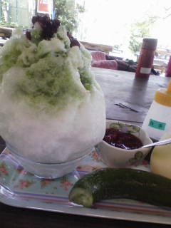 先日、城山のメガ盛りかき氷がとてもおいしかったので、コンクリートジャングルの暑さから逃れて、高尾山にいきました。平日の朝なので、嘘のような静けさでした。暑いけど、かき氷を目指して登って行きました。生きかえりました。かき氷の用が済んだので、また引き返しましたとさ。これで¥400。キュウリもサービスです。