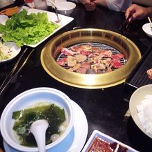 姉家族と行ってきました。ここのお店は初めてきました。個別にカーテンで仕切れるようになっています。姉夫婦のおススメは味付けジンギスカン。ご飯がもりもりと進みます。サンチュも柔らかくて美味しい♪焼き肉用たれには味噌ダレと醤油ダレがあります。私の好みは味噌ダレですね。ジンギスカンは味が付いているのでそのままサンチュの味噌付けて巻いて食べるとgood!美味しいです♪