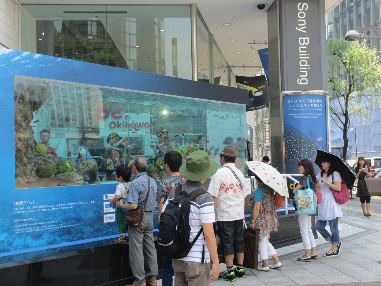 ソニー製品の宣伝を兼ねたムービーシアターや屋外大水槽が無料で楽しめます。この夏は沖縄美ら海水族館の魚たちを大水槽で観賞できます。8階のシアターでは沖縄の海の生物が臨場感あふれる映像で見られます。昨年は世界遺産を取り上げてました。銀座・有楽町を歩いて疲れた時に、訪れるとリフレッシュできます。