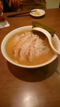 チャーシューメンをオーダーしたが結構ボリュームがあった。スープはいわゆる豚骨魚介で、麺は自家製麺とのことで中太麺です。そして、厚切りのバラチャーシュー、美味しかった。値段も750円とリーズナブル。連れはつけ麺のヘルシーセットだったが満足した様子。メニューは豊富なので、また来てみたいと思いました。