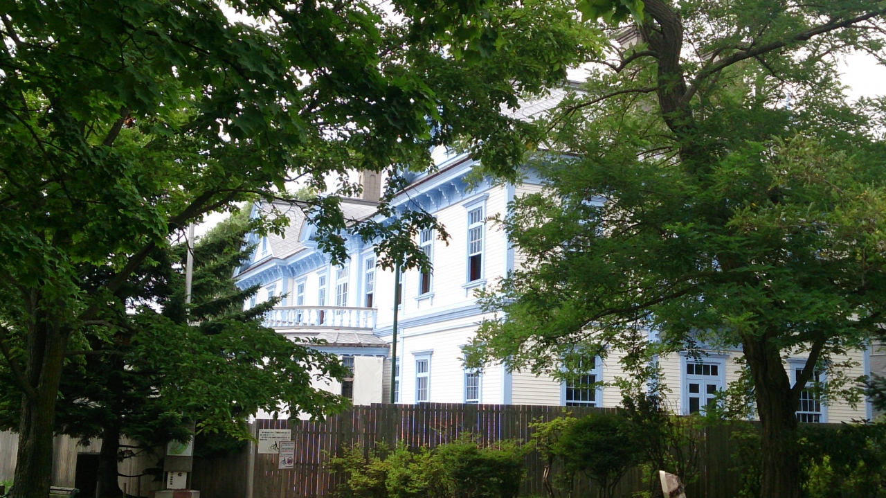 現在、耐震補強工事中で仮囲いをして工事をしているので全景を望むことはできませんが、少し離れた場所からは、水色と白の美しい洋館の姿を見ることが出来ます。訪問したの7月末で中島公園の木々がもっとも生き生きとしており、緑も豊かな木々と一体となった姿は気品を感じます。全国各地に歴史的価値のある洋館は多数存在しますが、これほど周囲の環境が素晴らしい中で建っている洋館は珍しいんじゃないでしょうか。また規模的にも相当な大きさの建物で重厚感を強く感じます。アクセスについても地下鉄の中島公園駅から500~600mぐらいの便利な場所です。