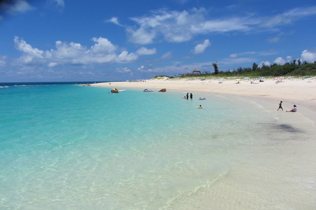 与那覇前浜はコバルトブルーの海と白浜のコントラストが見事で東洋一美しいと言われるビーチです。約7kmに渡って砂浜が続いており、しかもいつも人が少ないのでおススメです。来間大橋や栗間島も一望できます。シャワー、トイレ、売店、食堂、レンタル、アクティビティーなども揃っています。また夕日スポットとしても有名です。、その右手の島が来間島です。この辺りの景観も大好きです。