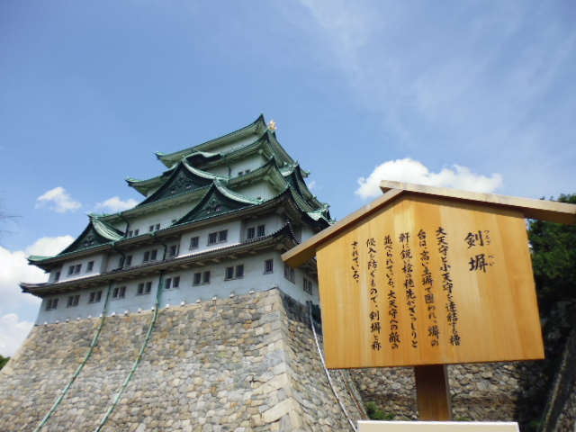 名古屋城の石垣の曲線がきれいです。天守閣は濠に囲まれ美しくそびえていますが、そこを守るかのような石垣です。
