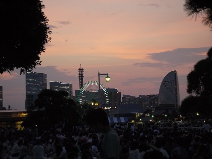 夕焼けに染まる空に観覧車のイルミネーションが灯り山下公園の端からでもハッキリと時刻を確認出来るコスモクロック21です。1989年に開催された横浜博覧会出展施設として建てられましたが、そのまま周りに遊戯施設を設置され「よこはまワールド」となり、この地区のシンボルとなっている。