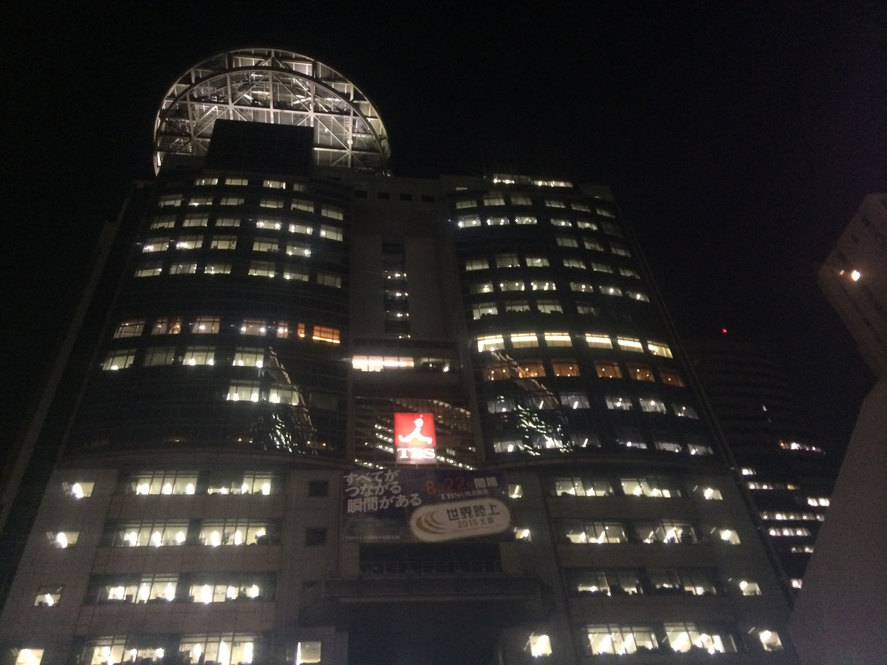 テレビでお馴染みのTBS社屋。屋上の丸い部分が帽子なんでしょうね。新しくて綺麗なビルでした。デリシャスで食べたり遊んだりした後にいったら一般の人は、入れない時間になっていました。ステージやなりきり写真館などのイベントが楽しかったです。