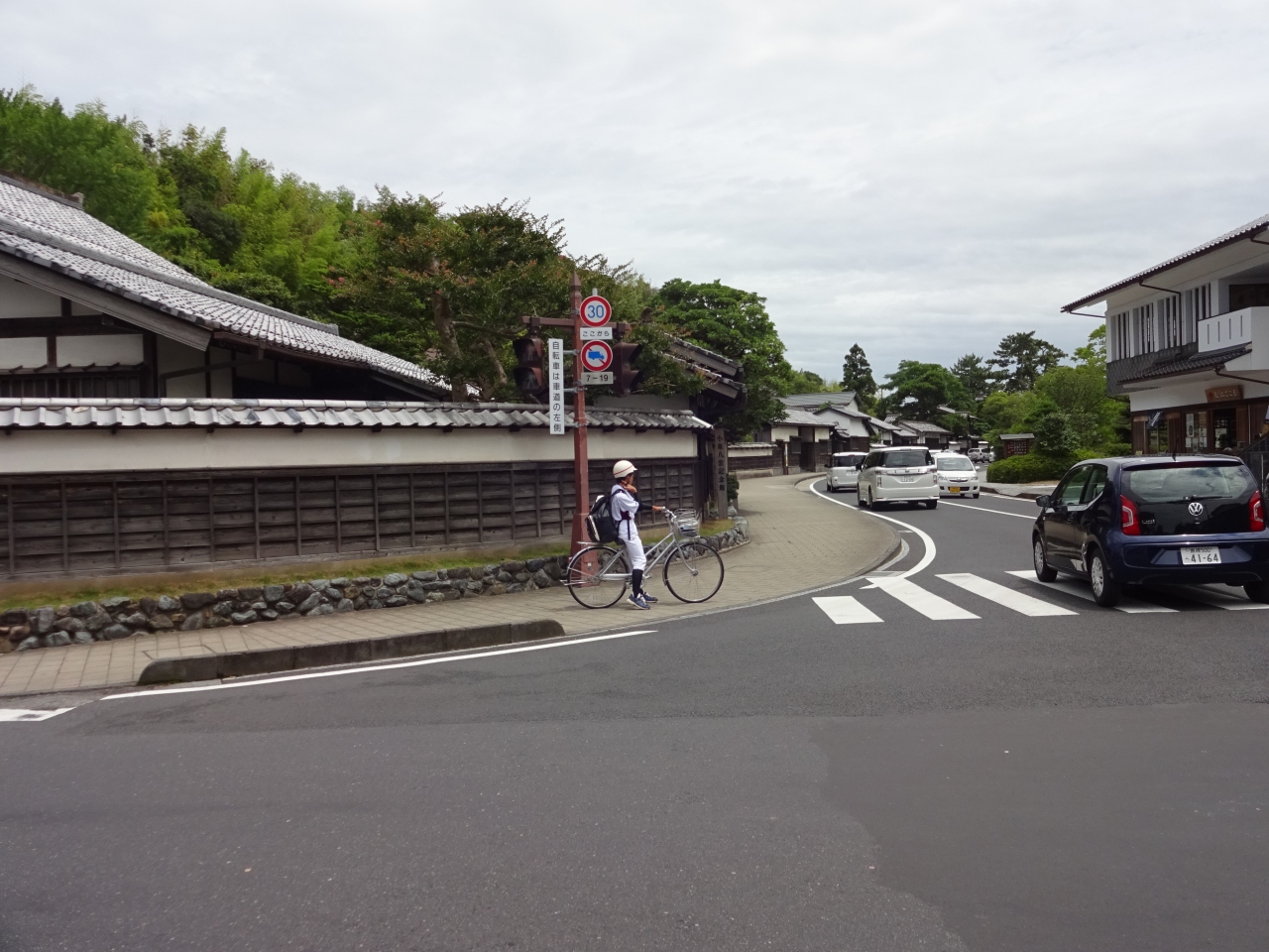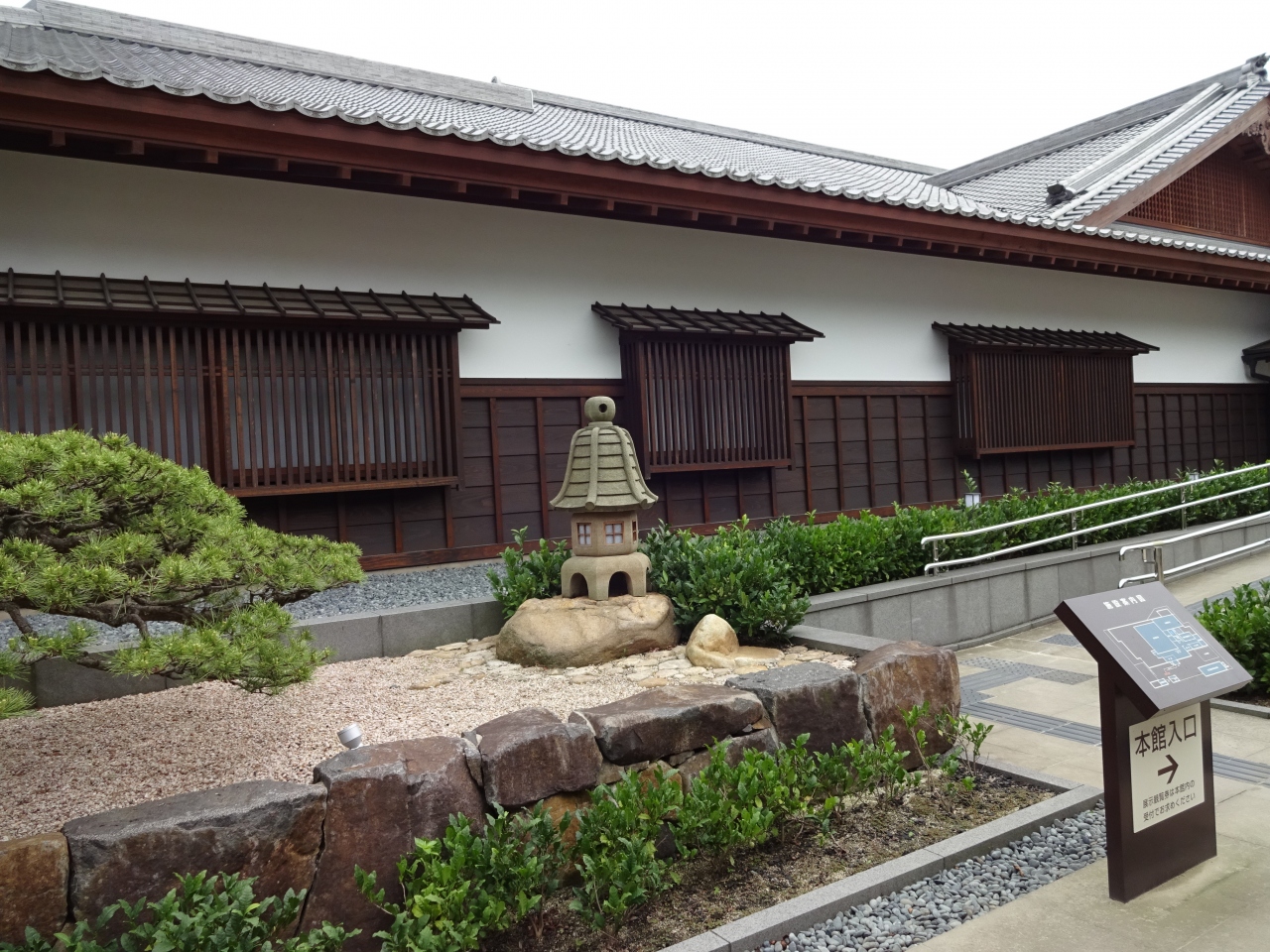 お堀のそばに、武家屋敷風の建物がならんでいます。