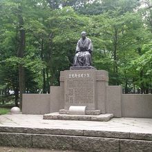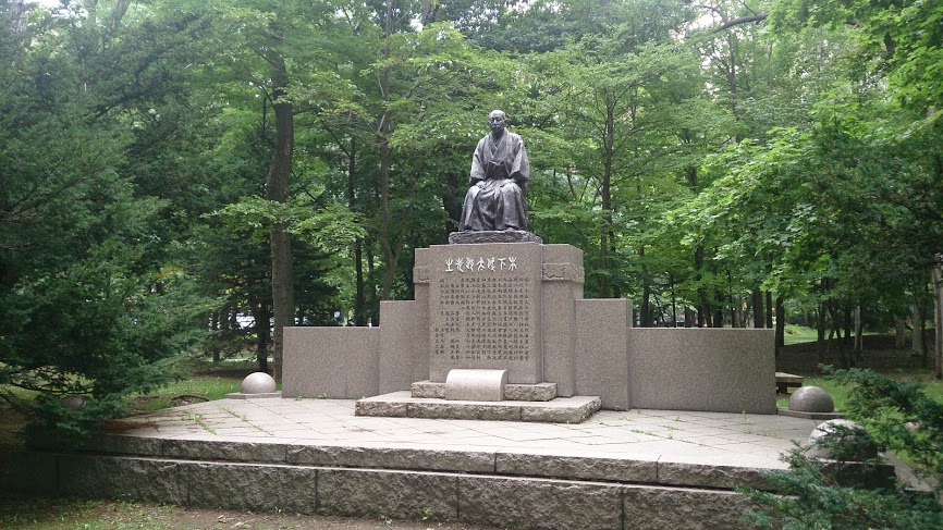 中島公園の中央部にあって、夏場は木々が鬱蒼とした場所に建っているので、銅像自体は台座も含めて結構な大きさですが意外に見つけづらいです。また、冬場は雪深いと見に行くのはおっくうな場所だと思います。この方は北海道の発展のために尽力した政治家さんで、武蔵野美術大学の創設者でもあり、教育、芸術振興に力を尽くした方とのことですが、今回の訪問で初めて知りました。しかしながら、それだけの方だけにかなり立派な台座に据えられた銅像は、和服姿で顔のしわや表情、服の折れ目なども再現されており、芸術性的にも素晴らしい銅像だと思います。