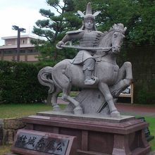 福井駅から5分ほど歩くと福井城に着きます。御本城橋を渡ると城内に入りますが、お城は今は福井県庁となってしまっています。橋を渡ってすぐ、県庁の前の駐車場や車寄せとして使われている場所にこの結城秀康の像が建っています。結城秀康は徳川家康の次男にもかかわらず、三男の秀忠が将軍になってしまった悲劇の武将です。教科書などの本に載っている像がこの像です。
