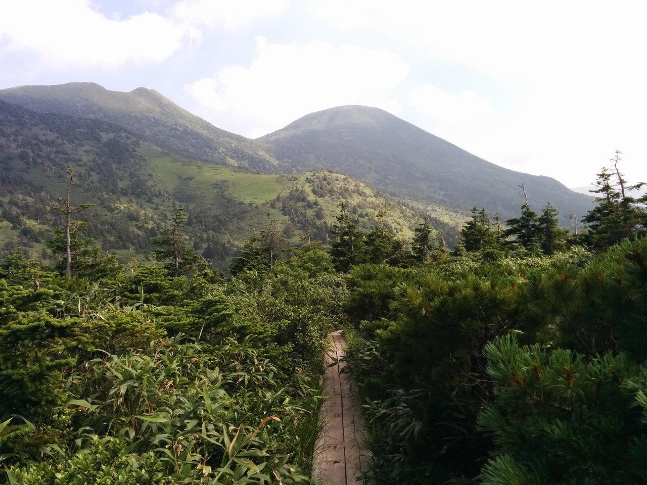 八甲田ロープウェイで登った所を出発点とした、遊歩道です。ゴールドラインとは違います。八の字になっていて、30分コースと60分コースがあります。この辺は千メートル越えていて、植物の高さが低く、いかにも高山にきたな、という感じです。気温は地上よりマイナス10度程で、超涼しいです。近くの山もきれいに見えて、最高の場所です。