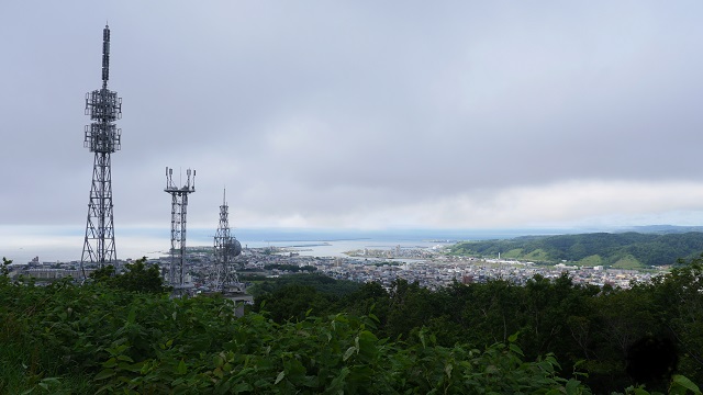 留萌市街地を望む眺望スポット。高台にある住宅街の道をさらに登ったところにある。小さいながらも案内標識があり迷わずに行くことができた。展望台からは屋や気が生い茂っているものの日本海や留萌市街の街並みが望める。以前にも書いたがこういった場所は晴天下ならばより絶景が楽しめる。訪問時は雲が多く苦労の割にはといったところ。