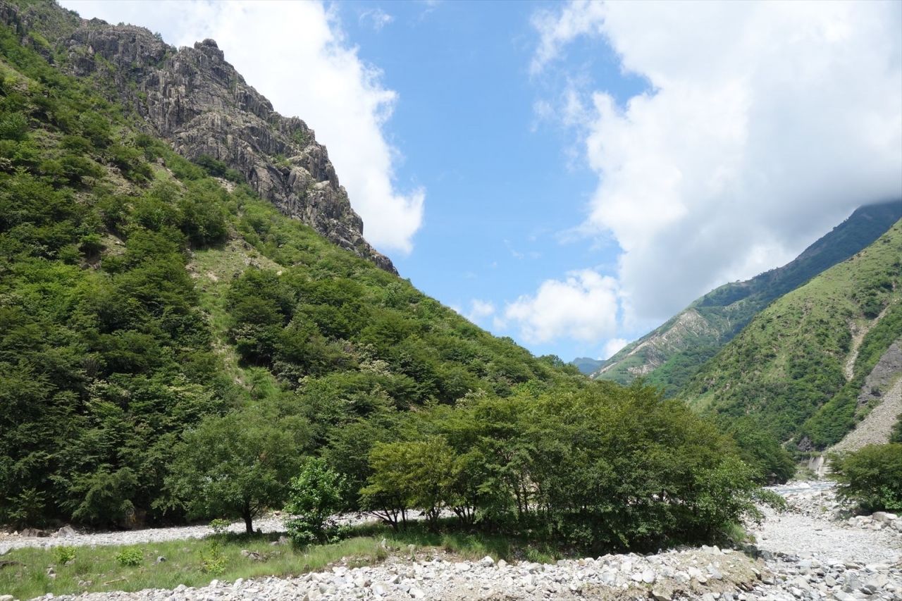 足尾銅山本山坑を流れる渡良瀬川の源流地帯にある渓谷です。銅山からの有毒ガス流入により山々の木が枯れてしまい山々は覆うものがなくなったせいで崩落を始め、岩がむき出しになり独特の景観を呈しております。ジャンダルムという岩峰が目立ち、清冽な谷川が流れ北アルプスの一部のような景観です。しかしこの景観も足尾からの有毒ガスが無ければどこにでもあるような美しい緑の山々であったはずです。明治の頃には足尾の本山から奥には3つの村があったのですが、今では廃村となって地名が残るのみ。今になって植林活動をして緑を取り戻そうとしていますが、まだまだ復旧の目処は立っていないと見た。この光景、福島県の海沿いの街に似ている。公害のせいで人が住むことができなくなってしまっている。足尾銅山は教科書にも載っていた日本の公害の原点。わたらせ渓谷鉄道から見た美しい川の源流がこんなことになっているとは。
