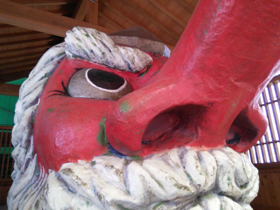 やよい商店街のアーケード南端の角にございまして、かなり大きな天狗様でございます。