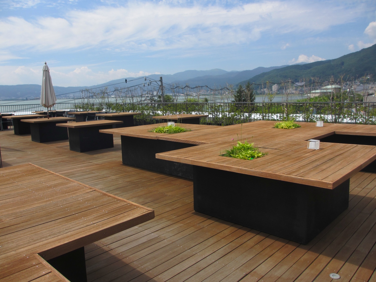 諏訪湖湖畔にある養命酒の会社が経営するレストランです。信州十四豚と旬の野菜を売りにしています。屋上からは諏訪湖も見渡せ、8月15日の諏訪湖花火では席と食事の予約が殺到します。レストラン以外にもイートインできるパン屋さんや、飲む酢などの健康食品、瀬戸物、漬物なども販売しています。食事をせずショッピングだけも可能です。