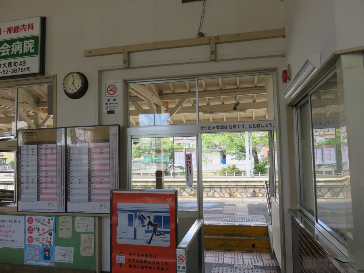 昨年は気が付かなかった部分を書き込みます。此方の駅ですが、有人となっている時間が短いようです。改札から出る時の木の看板がお気に入りになりました。また、此方の駅の自動券売機ですが販売時間が限られていました?(何故だろう)7時から18時30分までだそうです。時間外の方は列車内で購入するか、ワンマンの場合は降車駅で処理するみたいです。カルチャーショックを受けました。