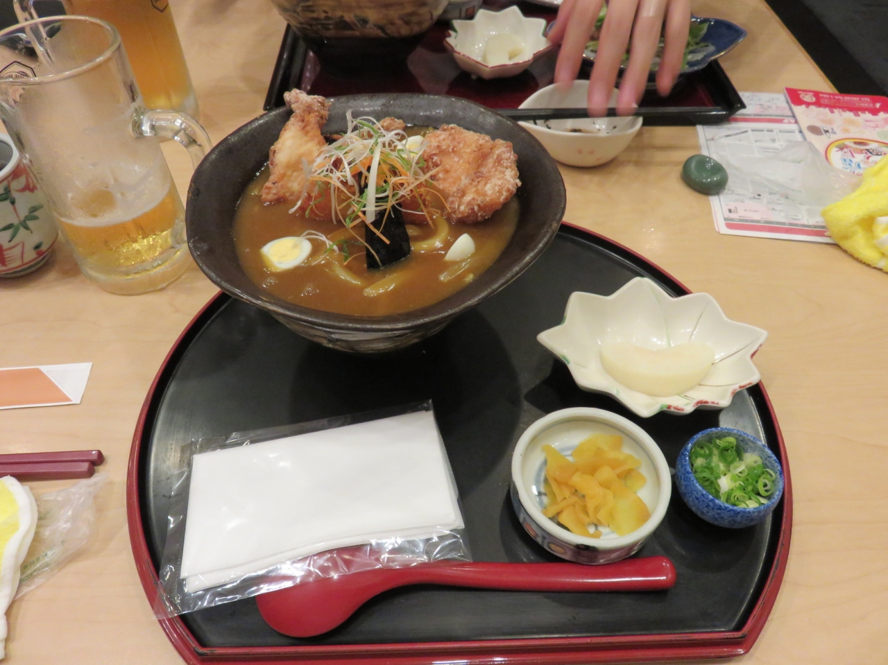 今回も立ち寄ってしまいました。本当は 一番人気の「勢川」へ行ったのですが、20時を過ぎていたので入れず、営業中の此方に入りました。入り口で「冷やしうどん」の文字を見つけました。昨年は気が付きませんでしたが、汗だくになる事は有りませんでした。但し、冷たいのは「うどん」だけなので温度が少し低いと言った感じです。プラス、鳥唐揚げのトッピングで注文しました。下の御飯が少なかったような気がしましたが、満足しました。