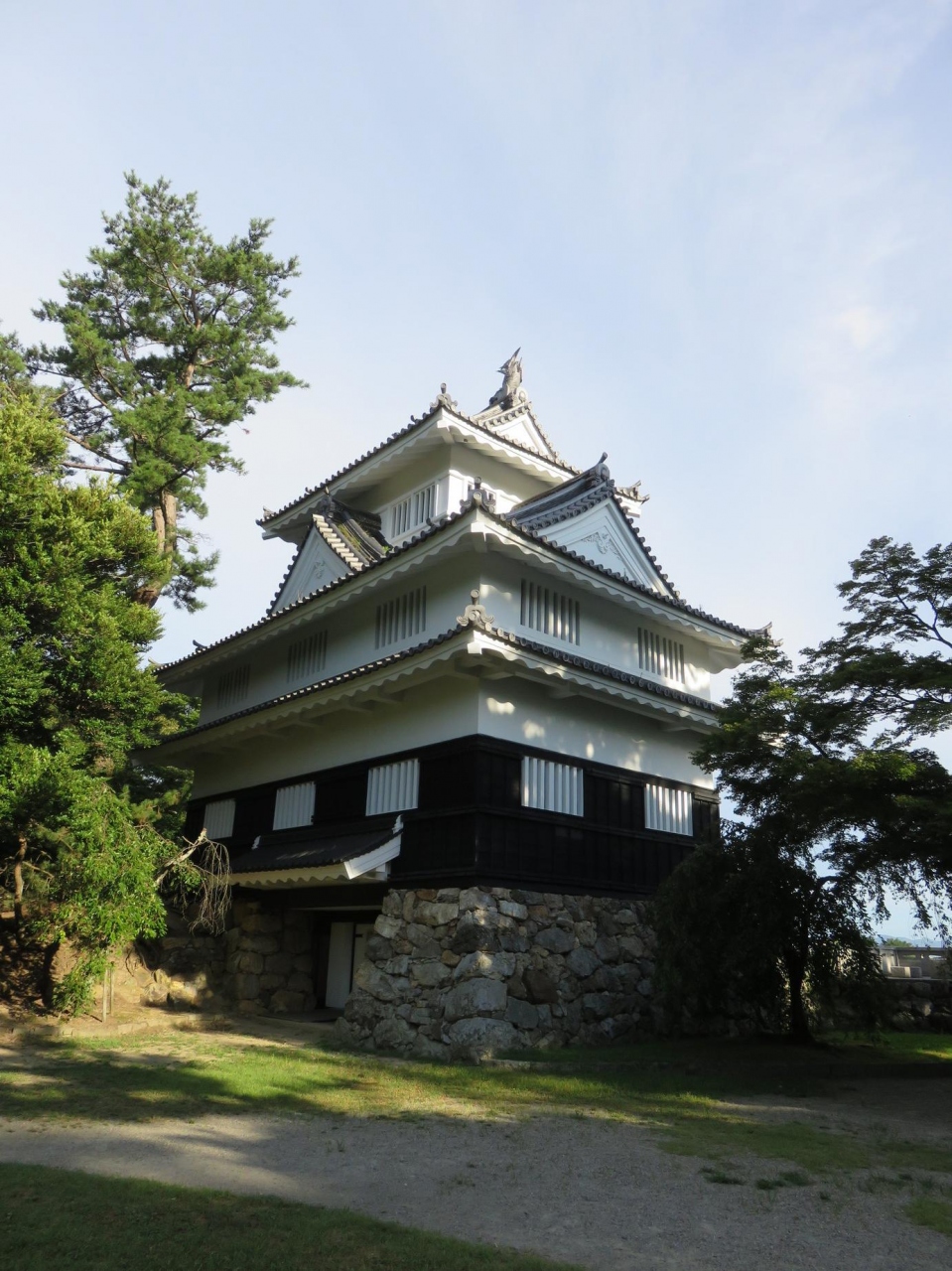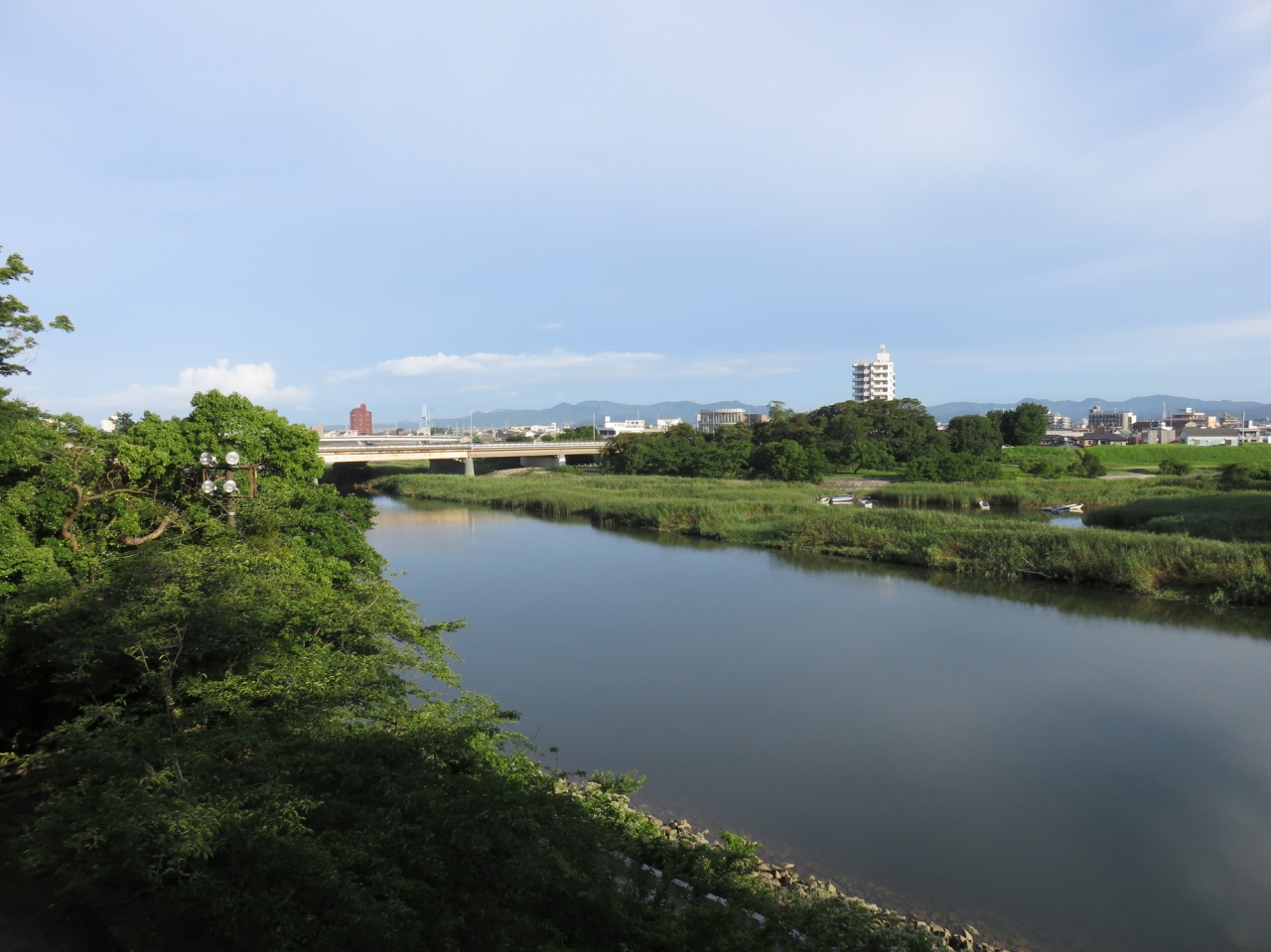 豊橋公園の左奥の方に小さな城が建っていました。周囲の木に隠れ公園内から城を望むことはできませんでした。城の裏手のは川が流れており、見晴らしは良いようです。公園側も城の敷地だった事を考えると、今ほど立木も無かったので見晴らしは良かったものと考えられます。石垣には文字等が入っているとのことで探してみたのですが、はっきりと認識できる物は有りませんでした。