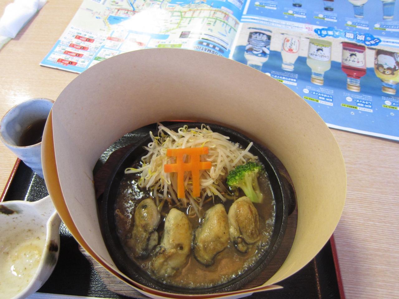 宮島といえば「かき」と思って注文して、楽しみに待ちました。食べるとちょっと残念でした。考えてみると今の季節は夏。カキの旬は冬でした。もう一つ、見本のカキの数よりかなり少なかったのです。えー、と思いました。