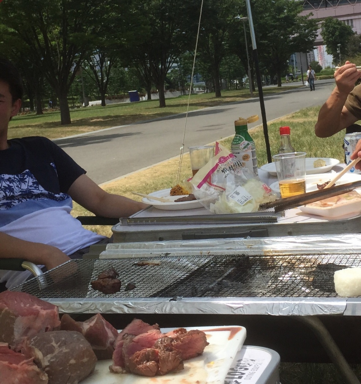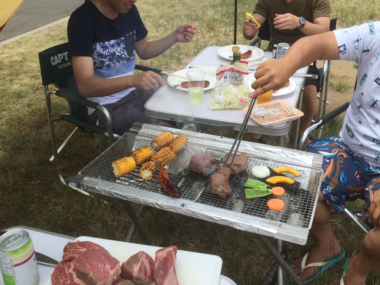 ネットで予約し人数と機材レンタル。1,080/人。炭火コンロとテーブル、椅子。オプションでタープとアイスボックスは必需品だ。食材は持ち込む人が大半か?コストコで2キロのリブアイブロックを中心に持ち込む。もちろんアルコールもオッケー。