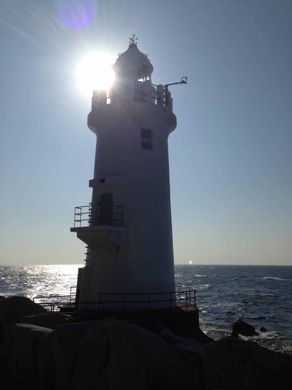 駐車場から、海岸ばたの遊歩道を歩いて行くと、折り返し地点の少し手前に灯台があります。