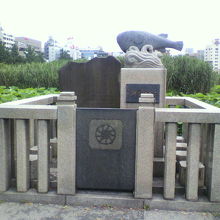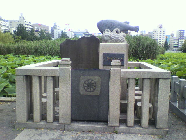 このふぐ供養碑もその中のひとつ。波にのるふぐが象られています。なんかかわいい!東京ふぐ料理連盟により建立されたそうです。