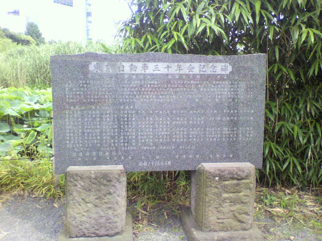 この東京自動車三十年会記念碑もその中のひとつ。日本の自動車業界の黎明期を支えた方たちを顕彰する記念碑として、昭和50年(1975年)が三十年会が建立したそうです。三十年会とは昭和28年に業界歴30年以上の人たちで結成された会だそうです。