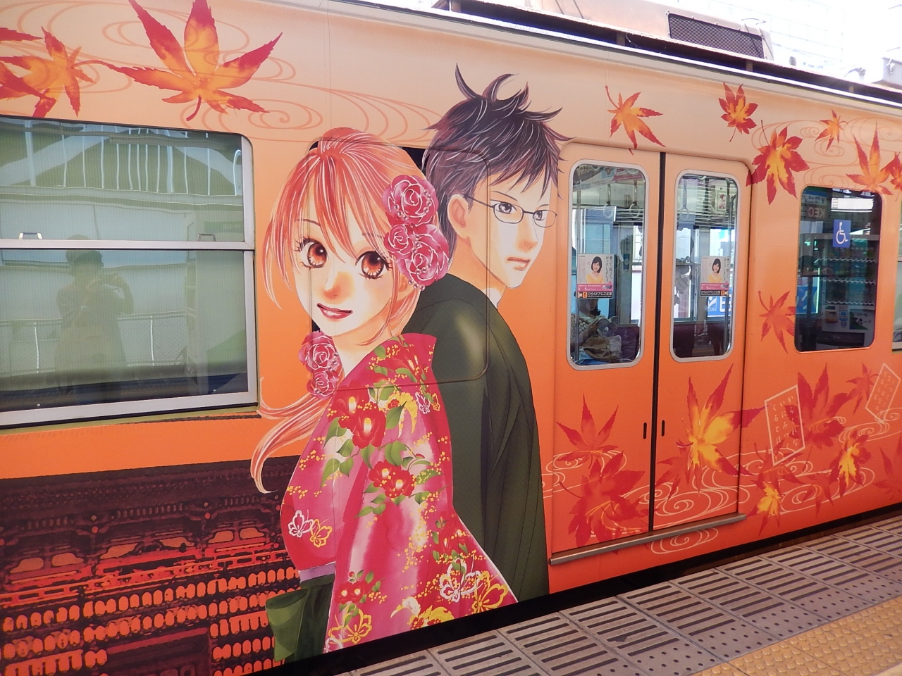 アニメ「ちはやふる」のラッピング電車が走っていました