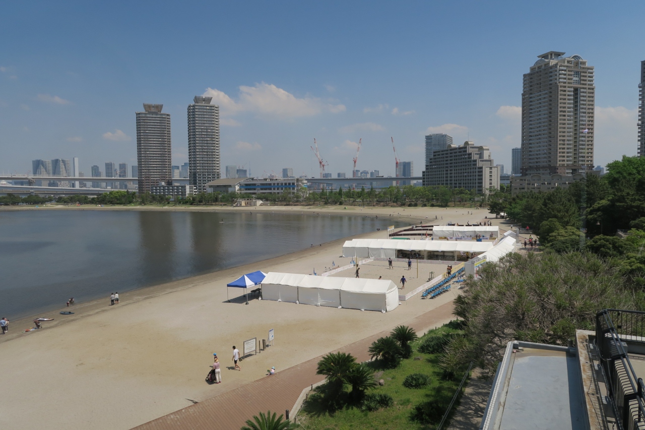 お台場海浜公園 (オダイバカイヒンコウエン)は、東京都港区台場に有ります。ここでは、週末んなると様々なイベントが行われていて、その中でも春から夏にかけては浜辺で日光浴を楽しんでいる方も多くいます。ぜひ、一度、行ってみてください