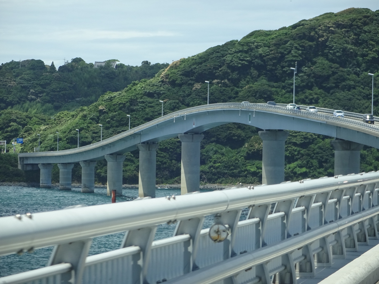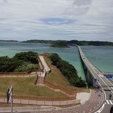 本州側の橋のそばの高台、橋を渡ってすぐの角島の展望台の2か所から橋全体が見渡すことができます。ただ、橋を渡らない人も多いのか、本州側の高台は人がいっぱいでしたが、橋を渡ってからの展望台は、けっこうガラガラでした(駐車場もいっぱいあるのに)