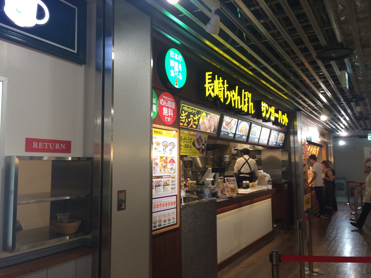 カウンター店舗で注文し精算するとカードを渡され、注文品が出来たらカードがなり取りに行き、他の店と共同の座席 フードコートで食べました。水もセルフサービスです。皿うどんを食べました。麺は細麺であんかけと絡むと麺が柔らかくなりました。