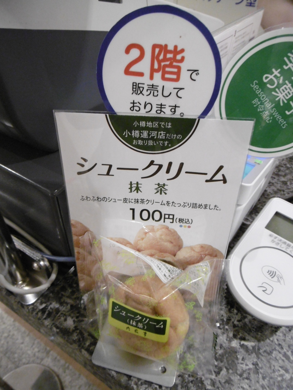「六花亭 小樽運河店」の二階にちょい休憩できるスペースがあった。買わなくても休憩できると思うが、だいたい皆は何かしら買ってコーヒータイムをしていた。限定商品の「雪こんチーズ」がすっごくうまかった。一階は販売スペースで、こっちは混んでいた。