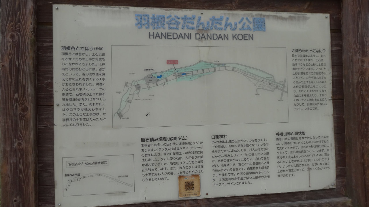 四季折々の花が、季節ごとに楽しめる羽根谷だんだん公園。(4月はソメイヨシノやヤエザクラ、5月はキリシマツツジやフジ、6月から7月はあじさい、カイコウズ、12月はサザンカなど)。遊具や、バーベキュー施設、コンクリートの龍などもあります。また、コンクリートの平らな地面で作られた「ふじの舞台」というのもあり、スケボーを楽しんでいる方もいました。水遊びも楽しめ、子供が楽しんでいました。