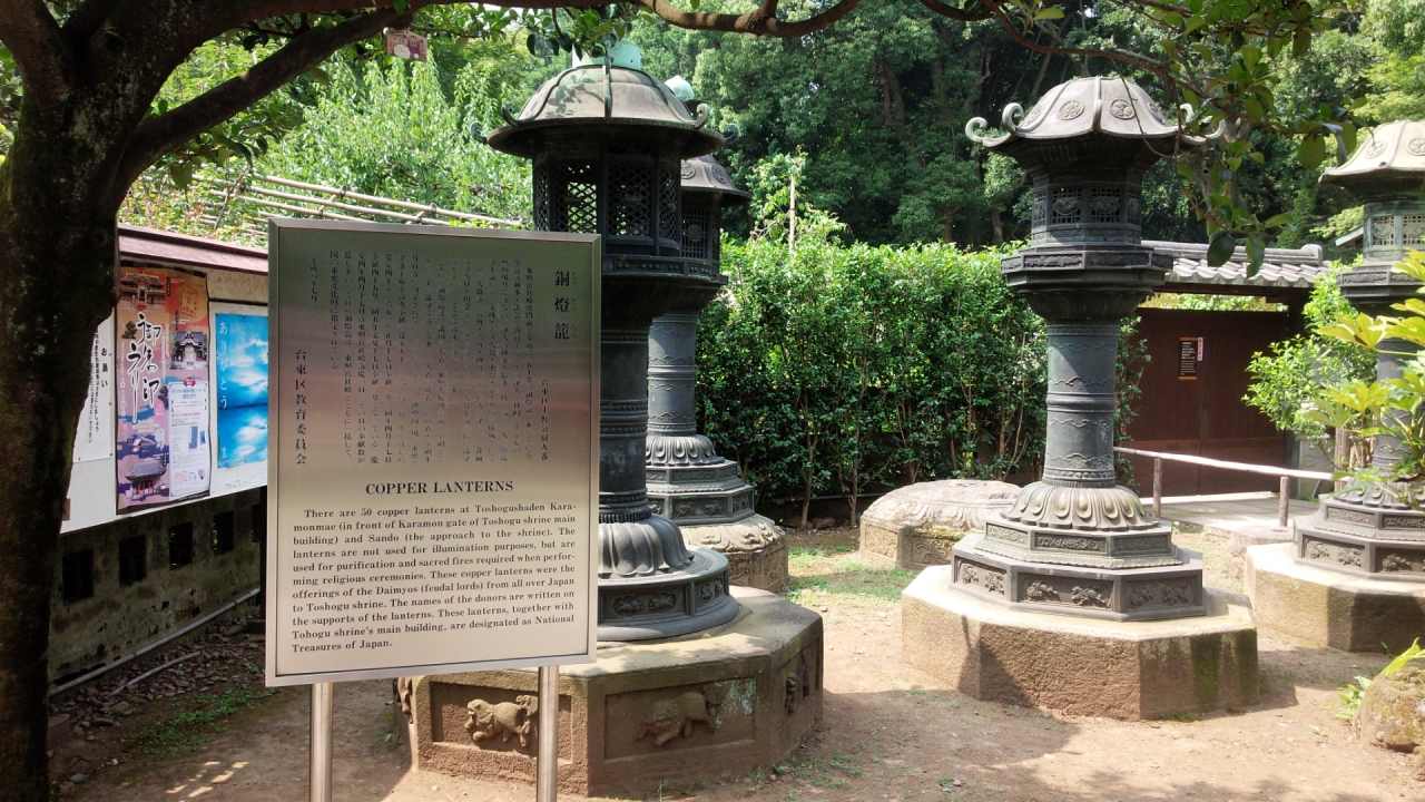 東照宮は徳川家康を祭った神社だそうですが、この銅の燈籠は、美作津山城主森長継が寄進したそうです。対になっていて、石の燈籠と比べるとやはり細工が細かい分見ごたえあります。