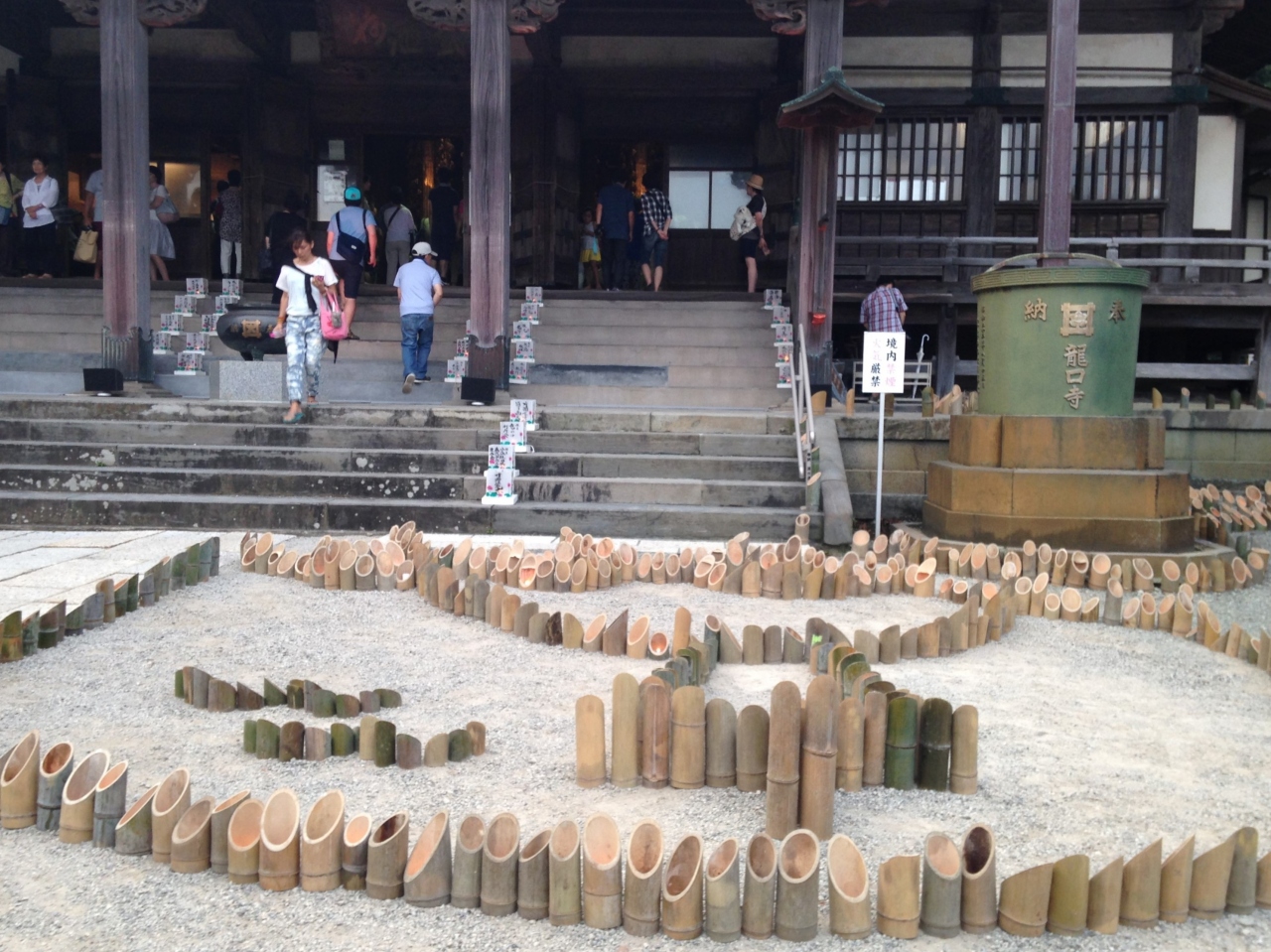 江ノ電の江ノ島駅から歩いて3分ほどの所に龍口寺があります。今年2015年は8月1日に龍の口竹灯籠というイベントがありました。18時始まりだったので18時前に行きましたが、なかなか暗くならず、きれいな灯篭の明かりが見られませんでした。(待ちきれませんでした。)来年は、暗くなった後、19時過ぎに行こうと思います。